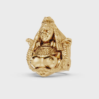 Inspired by the Queen of Egypt herself, Cleopatra. One of the most famous women in history. The ring shows her in the nude only wearing her headdress, which displays her famous snakes. The ring is heavy and large, it'll definitely stand out amongst your fingers.